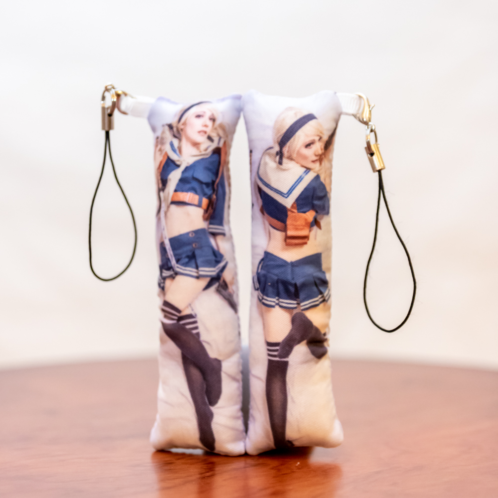 Carry your waifu around with you! These mini keychain dakimakura pillows are pocket sized 1"x4" versions of our full sized dakimakura body pillows.